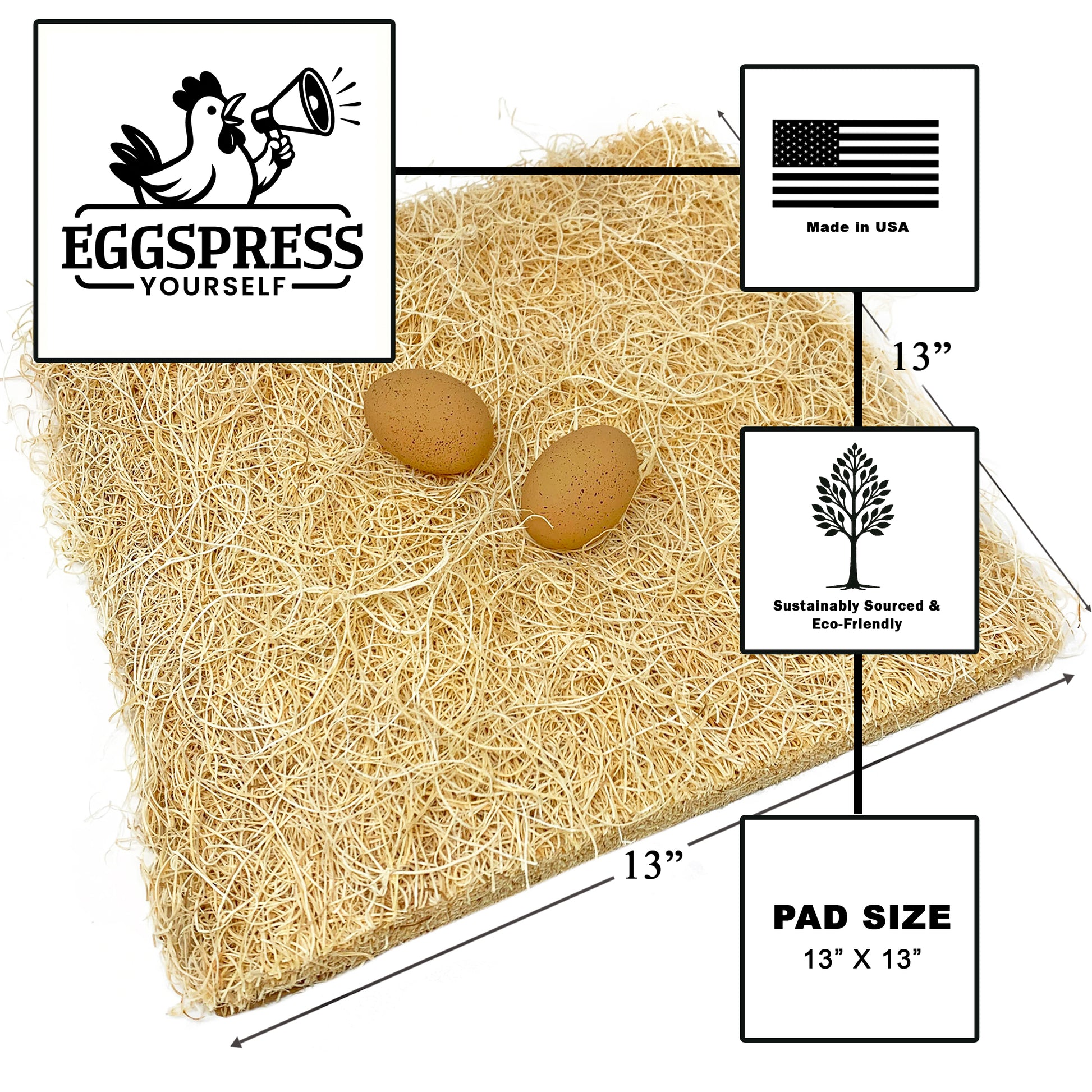 - Fits Standard Boxes: Flexible Fit: Each pad measures approximately 13" × 13" but can be easily scrunched or stretched to fit nesting boxes of various shapes and sizes.