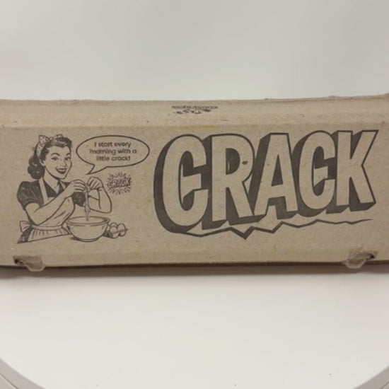 Start every morning with a little crack… and a smile! Our Crack paper egg carton features a lovely woman cracking an egg with a grin, paired with "CRACK" in bold letters and a sneaky little "crack" to echo that egg-splitting pop. She quips, "I start every morning with a little crack"—a cheeky nod that’ll have you chuckling over your breakfast! This carton is a fun tribute to egg-cracking enthusiasts.