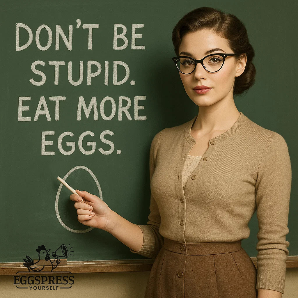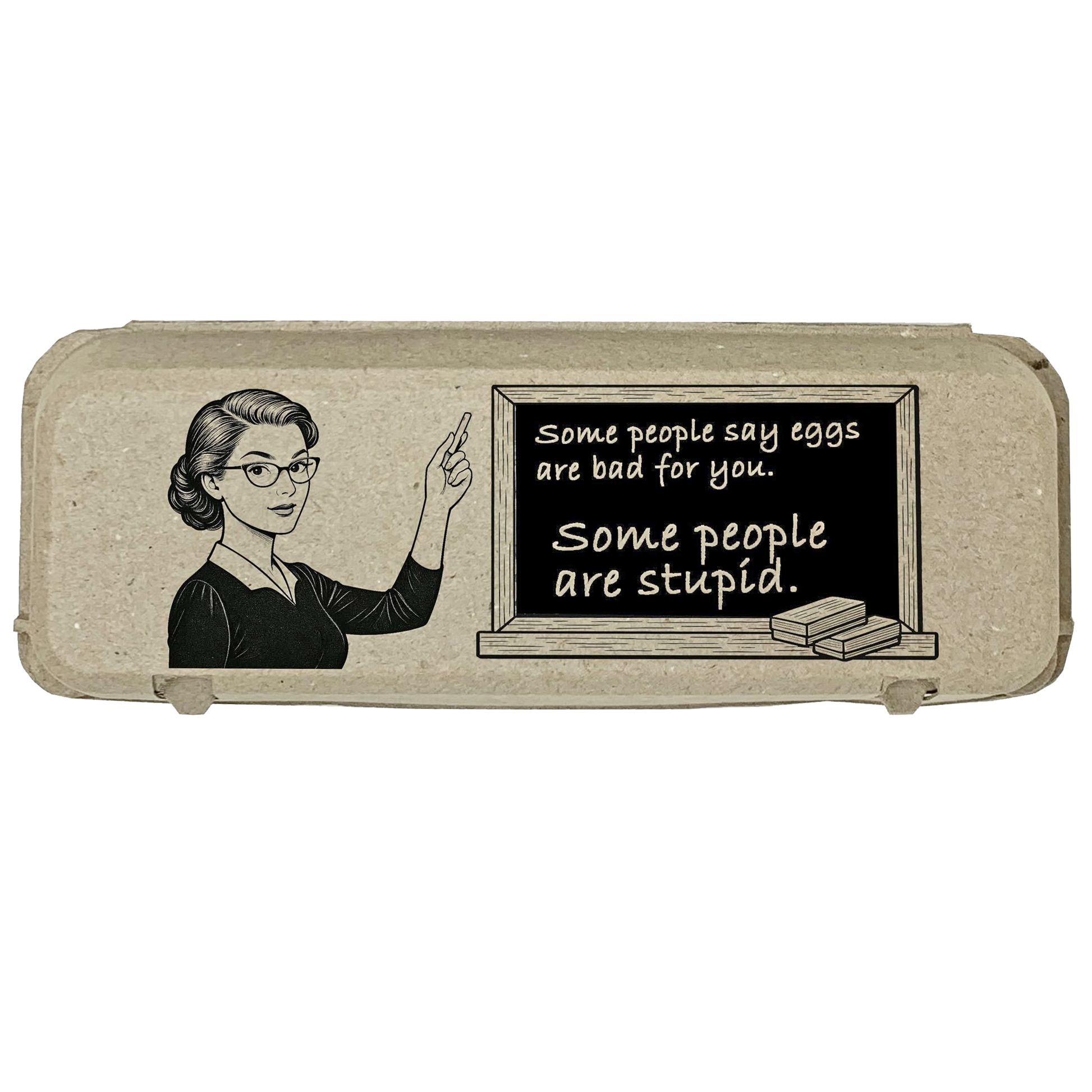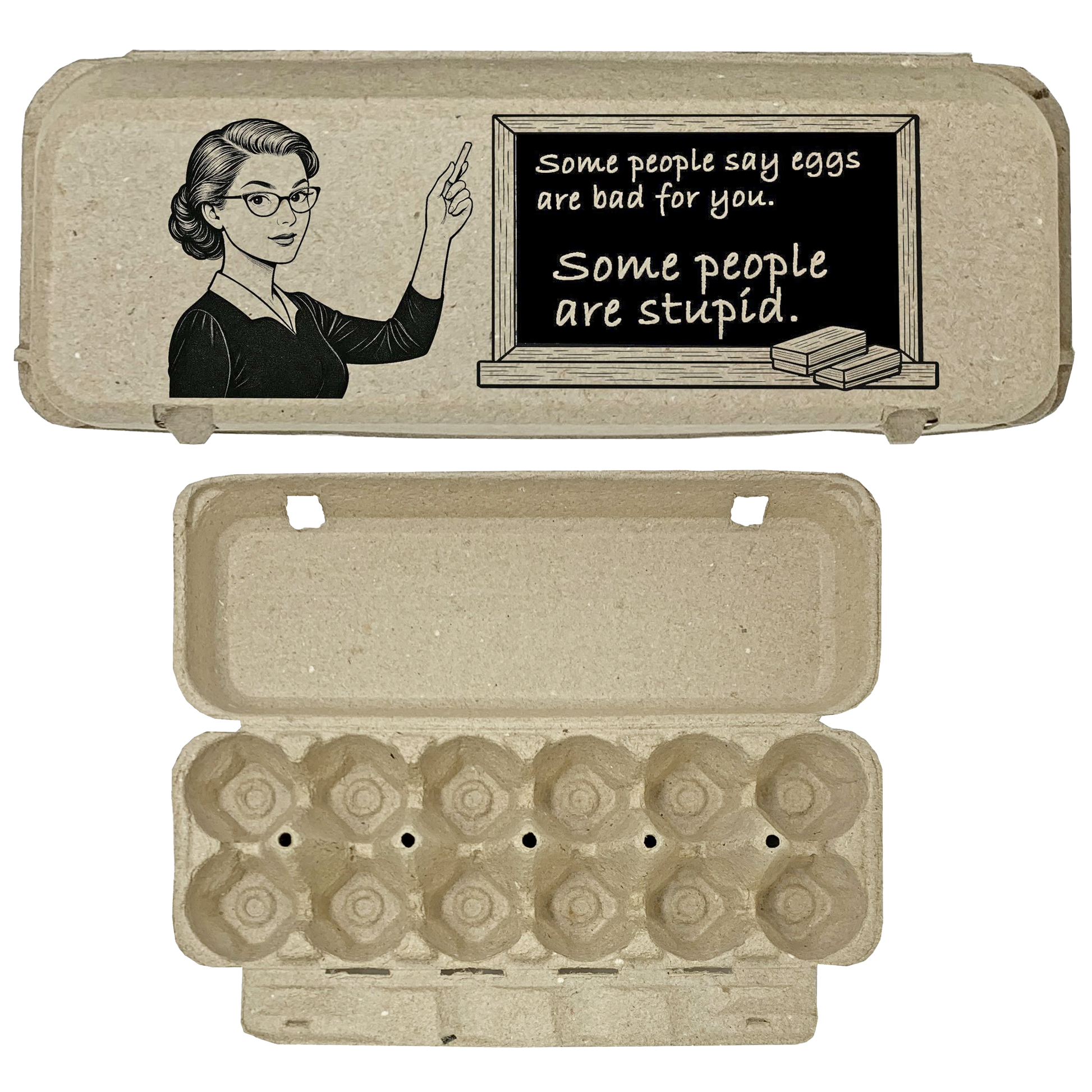 Get ready to laugh out loud with our Egg-spert Teacher paper egg carton, featuring a retro school teacher pointing at a chalkboard where she’s scribbled, "Some people say eggs are bad for you" followed by a sassy "Some people are stupid." This bold take-down of egg naysayers turns every dozen into a hilarious lesson in egg defense! The carton is a love letter to those who know eggs are the ultimate breakfast champ.